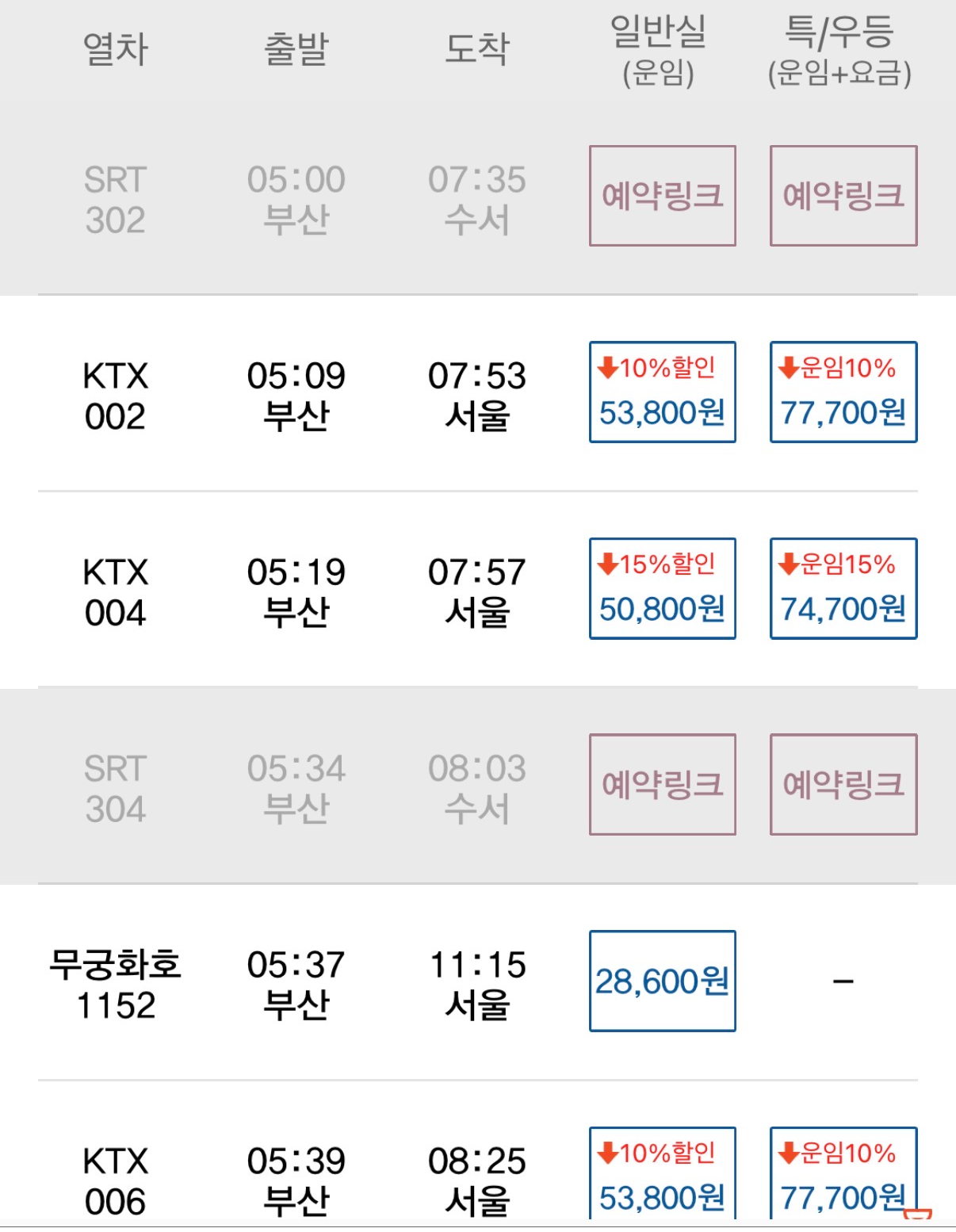 정해진 공식이 아니라 비행기 시간처럼 비인기 시간대의 경우 코레일앱에서