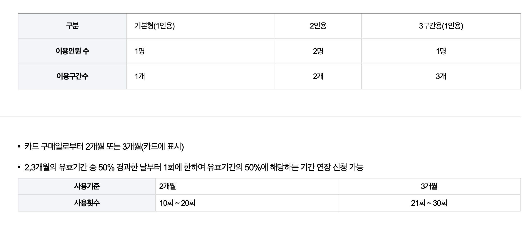 • 유효기간 : 카드 구매일부터 60일 또는 90일 (카드에 표시)